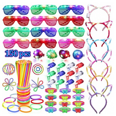 Itopfox 150PCS Glow in the Dark Party Supplies Set Light Up Glasses Headbands Rings 100 Glow Sticks DIY Necklaces Bracelets