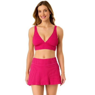Anne Cole Women's Live In Color Textured Shirred Soft Band Bralette Bikini Swim Top