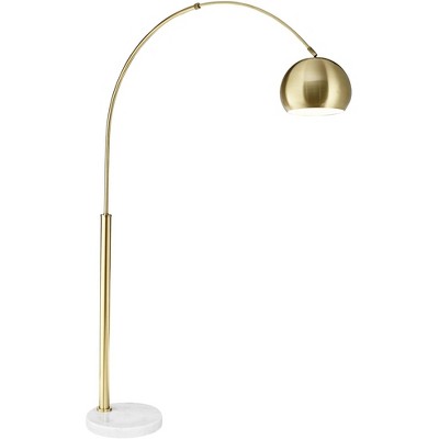 Possini Euro Design Granview Mid Century Modern 66" Tall Standing Floor Lamp with Glass Table USB Port Gold Metal Warm Brass Finish Living Room