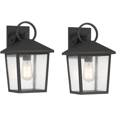 John Timberland Westmont 13 3/4" High Modern Outdoor Wall Light Fixture Mount Porch House Set of 2 Weatherproof Sand Black Aluminum Seeded Glass Shade