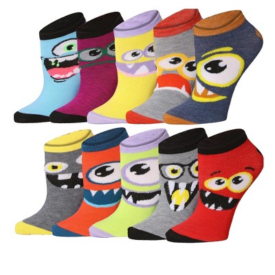 Tipi Toe Womens 10 Pairs Frightening Face Fiesta Pattern & Mix Colors For Vibrant Style Low Cut/No Show Socks