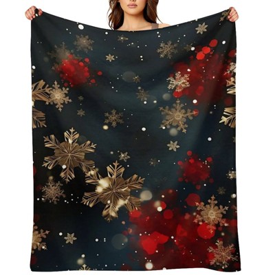 FIONECA Watercolor Red Bow Christmas Blanket with Holly Gold Stars Soft Fleece Cozy Holiday Throw Blanket 50x60 inches