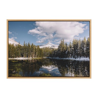 Kate and Laurel Sylvie Mountain Reflection Framed Canvas by Patricia Hasz of Patricia Rae Photography, 23x33, Natural