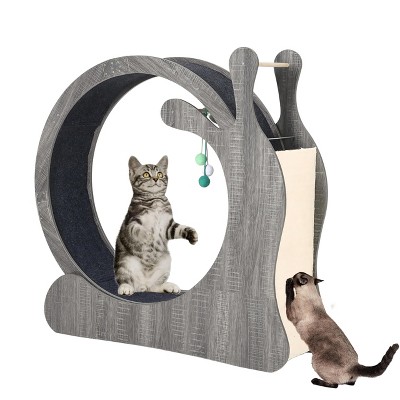 Cat Exercise Wheel, Wood Cat Exerciser Treadmill with Cat Scratching Board & Playing Balls, Quiet Cat Sports Running Wheel for Indoor Cats