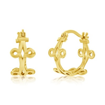 Bella Silver Sterling Silver Celtic Design Hoop Earrings - Gold Plated - Gold
