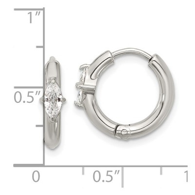 Chisel Stainless Steel Brushed and Polished with Blue Cubic Zirconia 6mm Hinged Hoop Earrings