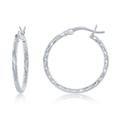 Black Bow Jewelry Contemporary Hoop Earrings in Sterling Silver - 30mm (1 1/8 Inch)