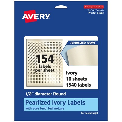 Avery Pearlized Ivory Round Labels with Sure Feed Technology, Print-to-the-Edge, .5" diameter