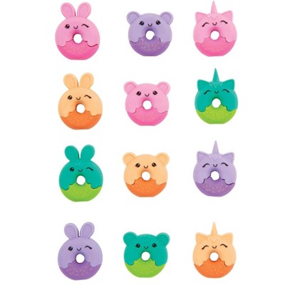 Donut Animal Eraser Toppers (12 Pack) - Fun Colorful