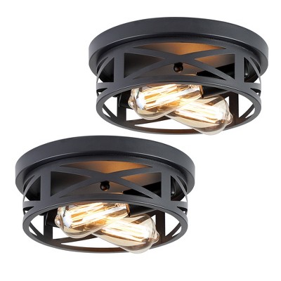 12.4" 4-Light Ironhouse Decorative Squared Semi Flush Mount Celling Light Fixture Black - Lalia Home: UL Listed, Industrial Farmhouse Style