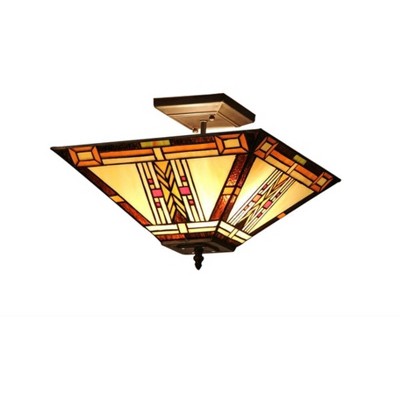 Chloe Lighting Innes Tiffany-Style 2 Light Mission Ceiling Pendant Fixture 16`` Shade
