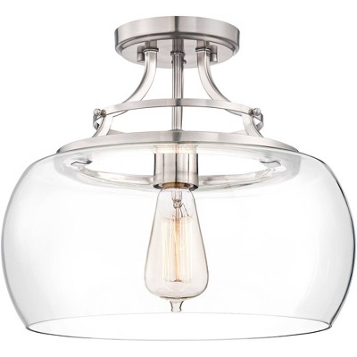 Franklin Iron Works Charleston Modern Industrial Ceiling Light Semi Flush Mount Fixture 13 1/2" Wide Brushed Nickel LED Clear Glass Shade for Bedroom