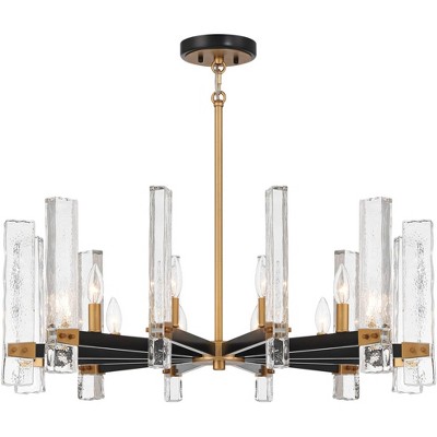 LamQee Large Farmhouse Wheel Chandelier Mid-century Pendant Fixture with Fabric Shades for Interior Lighting