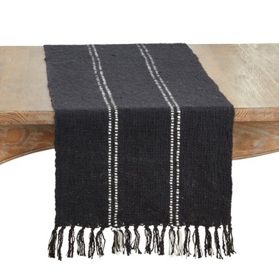 Saro Lifestyle Cotton Table Runner with Dash Line Design, 16"x72", Off-White