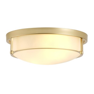 Globe Electric 2-Light Matte Brass Flush Mount Ceiling Light with Off-White Pleated Fabric Shade by Novogratz x Globe: Modern Luxury, Dimmable
