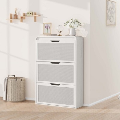 Fluted Shoe Storage Cabinet for Entryway with 3 Flip Drawers, 32" Wide Hidden Freestanding Shoe Rack Organizer for Hallway, Apartment