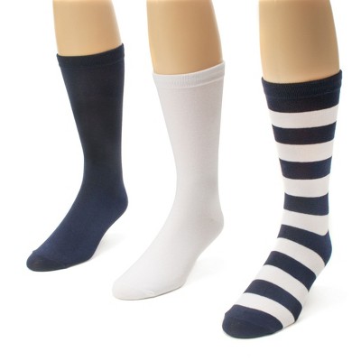 MUK LUKS Adult 3 Pack Sport Crew Socks, Navy/White, OS (6-11)