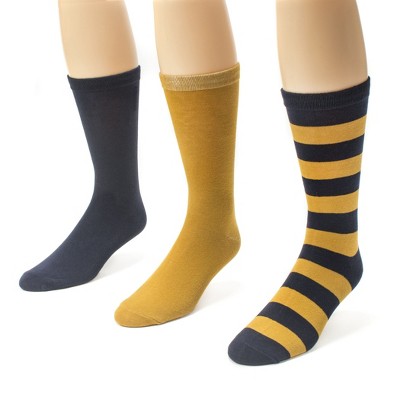 MUK LUKS Adult 3 Pack Sport Crew Socks, Navy/Gold, OS (6-11)