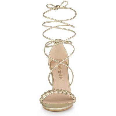 Allegra K Women's Woven Lace Up Strappy Stiletto Heel Sandals