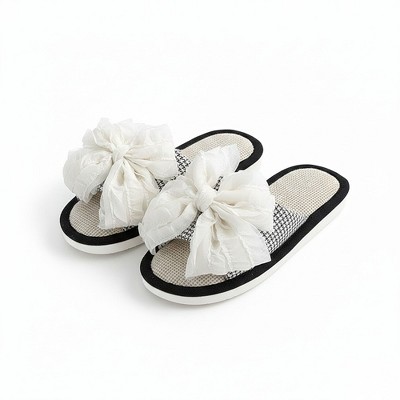 Anna-Kaci Lounge Women’s Open Toe Valentine Slide House Slippers with Sheer Bow Upper and Textured Footbed