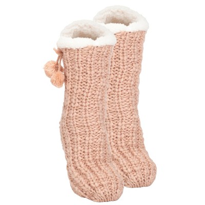 Elanze Designs Dust Pink Gold Glitter Knit Pom Pom Womens One Size Plush Lined Non Skid Indoor Slipper Socks