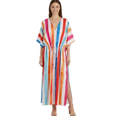 LA LEELA Womens Beach Maxi Caftan Casual Long Dresses 2X-3X Stripes Multicolor