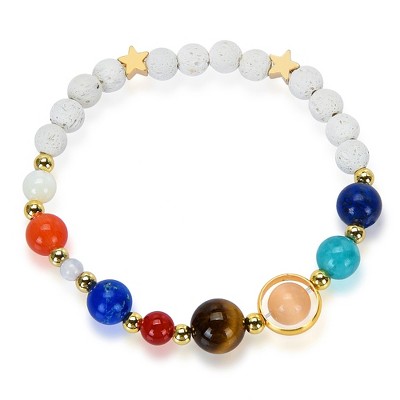 Women's Solar System Natural Stone Bead Stretch Bracelet - ELYA