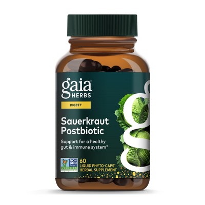 Gaia Herbs Sauerkraut Postbiotic - Natural Gut Health & Immune Support Supplement - Made with Fermented Sauerkraut - 60 Vegan Capsules (30 Servings)