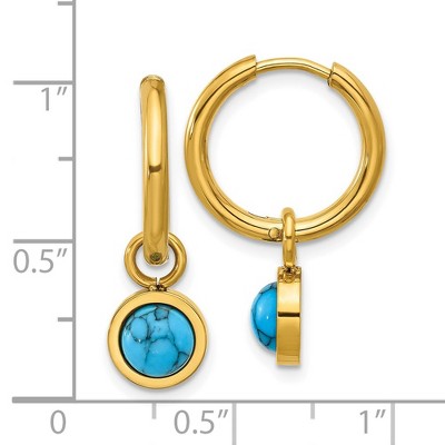 Chisel Stainless Steel Yellow IP-plated with Removeable Synthetic Turquoise Dangle Hinged Hoop Earrings