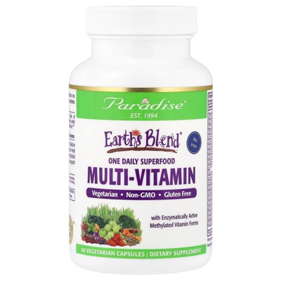 Paradise Herbs Earth's Blend, One Daily Superfood Multi-Vitamin with Iron, 60 Vegetarian Capsules