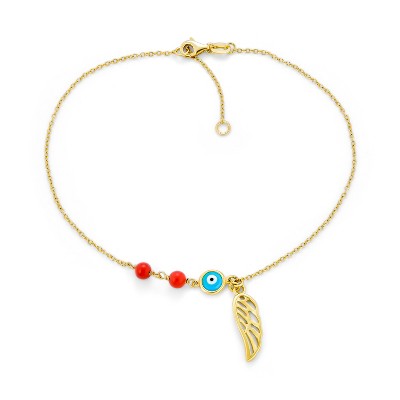 Bling Jewelry Turkish Evil Eye Anklet Ankle Bracelet 14k Gold Plated Silver 9-10 Inch