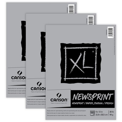 Canson XL Series Newsprint Pad, Tape Binding, 100 Sheet, 9x12 inch, Pack of 3