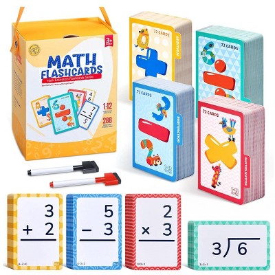 Etokfoks 288 Piece Math Flash Cards Kit Ages 4-8 Addition Subtraction Multiplication Division Mat Chart for Kindergarten to Grade 6