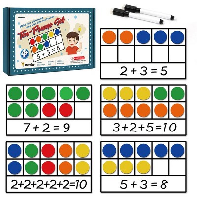 Etokfoks Magnetic Ten Frame Set 5 Frames with 55 Discs for Math Skill Development Counting Addition Subtraction Multiplication 1 Set