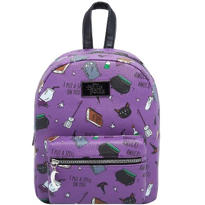 Disney Hocus Pocus Spell Book Binx Cauldron AOP Faux Leather Mini Backpack Bag Purple