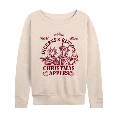 Women's The Muppets Dickens Rizzo Apples Lightweight French Terry Wide Neck Long Sleeve Graphic Shirt - Birch - Small