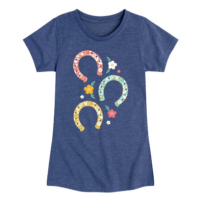 Girls' - Instant Message - Floral Horseshoes Fitted Short Sleeve Graphic T-Shirt