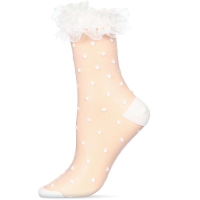 Memoi Women's Polka Dot Ruffle Lace Cuff Sheer Crew Socks