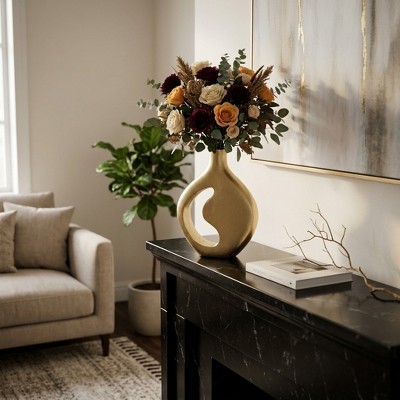 Round Ecomix Vase for Living Room and Home Decor - Metal Ring Handles and Textured Finish Flower Vase for House Display