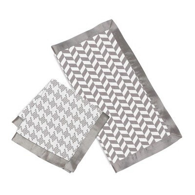 Bacati - Houndstooth/Herringbone Muslin 2 pack Security Blankets Gray
