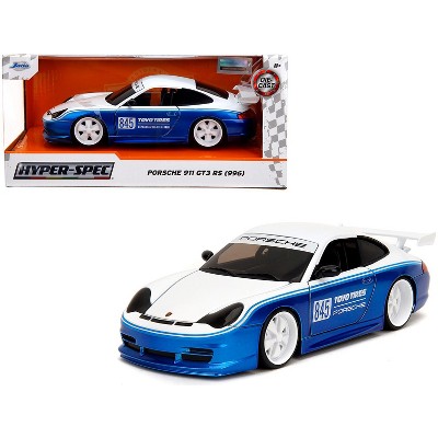 Porsche 911 GT3 RS (996) #845 White and Blue Metallic "Toyo Tires" "Hyper-Spec" Series 1/24 Diecast Model Car by Jada