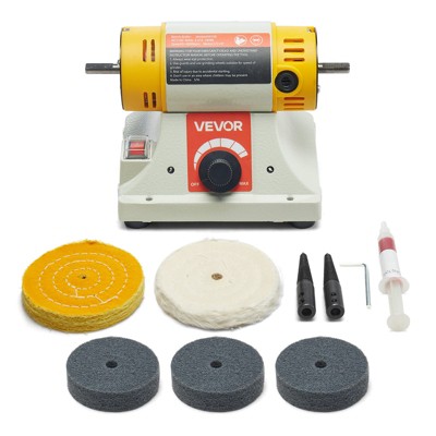 VEVOR Bench Buffer Polisher, 1/2HP, 0 to 8000RPM,with 2PCS 4" Cotton Wheel, 3PCS 3" Abrasive Fiber Wheels & Polishing Compound, Yellow+White