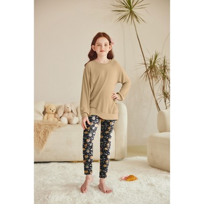 Arshiner Girls 2 Piece Outfits Long Sleeve Raglan Top with Pockets and Slim Fit Pants Daily Wear Set for 6-14Y