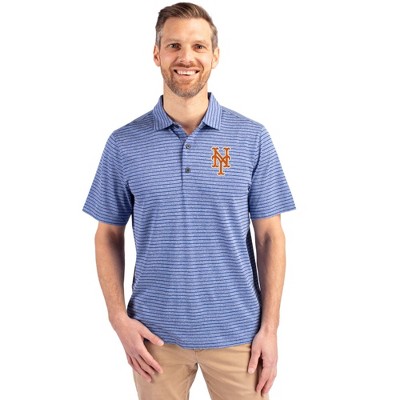 New York Mets Cutter & Buck Forge Eco Heather Stripe Stretch Recycled Mens Polo - Tour Blue Heather - 3X Large