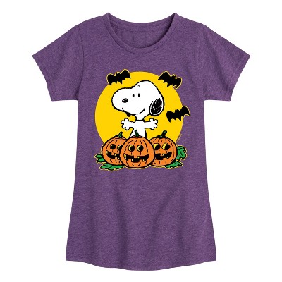 Girls' - Peanuts - Snoopy Pumpkin Patch Fitted Short Sleeve Graphic T-Shirt