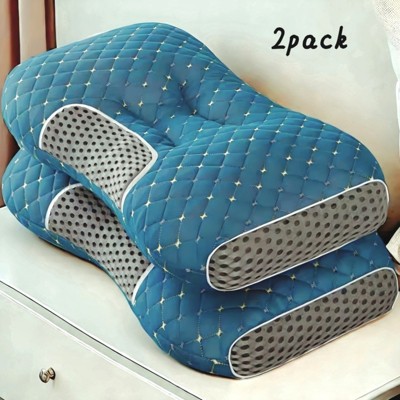 CAVINAS 2Pcs Ergonomic Massage Contour Pillow,3D Knitted Cotton Deep Sleep Pillow with High Density Momory Foam Filling,Machine-Washable Cover,Blue