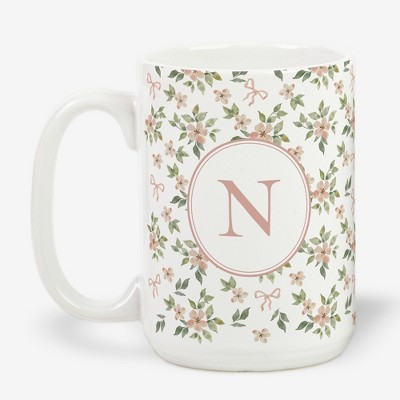Personalization Mall Blush & Bloom15oz Ceramic Mug, Pink Bows