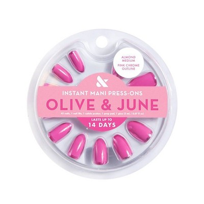 Olive & June Press-On Fake Nails - M Almond - Pink Chrome Outline - 42ct