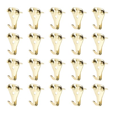 Unique Bargains Photo Frame Hanging Hooks Kit with Nails for Wall Mounting Brassy 1.18" x 0.39" 20 Pcs