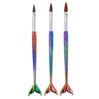 Unique Bargains Nail Art Brushes Silver Tone Multicolored 3 Pcs
